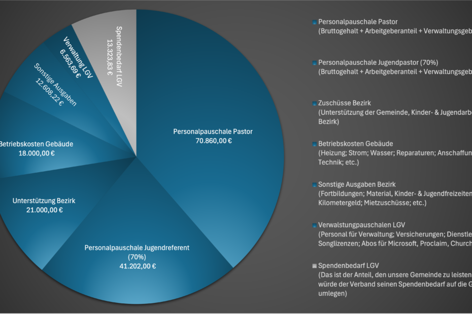 Auch 2025 werden wir als Gemeinde wieder auf eure Unterstützung angewiesen sein. Der Spendenbedarf für Schopfloch liegt bei rund 121.000€, dazu kommen nochmal gut 16.500€ für den Gebäudebetrieb & notwendige Rücklagen. Und schließlich werden wir die anderen Gemeinden im Bezirk auch dieses Jahr wieder mit gut 21.000€ unterstützen. Daueraufträge helfen uns dabei enorm, um verlässlich planen zu können.