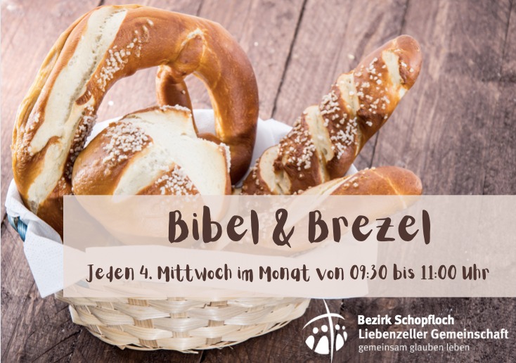 Ein gemütliches Frühstück mit Tee, Kaffee, Brötchen und Marmelade. Austausch und Gespräch in entspannter Runde. Gemeinsames Singen und ein kurzer, aber knackiger biblischer Impuls. Bibel & Brezel findet an jedem 4. Mittwoch im Monat statt. Eingeladen sind wirklich alle Personen aus  allen Generationen! Eltern mit kleinen Kindern, Männer und Frauen im frühen Rentenalter, genauso wie Senioren der Generation 70 Plus. Komm doch und schau gerne mal vorbei.