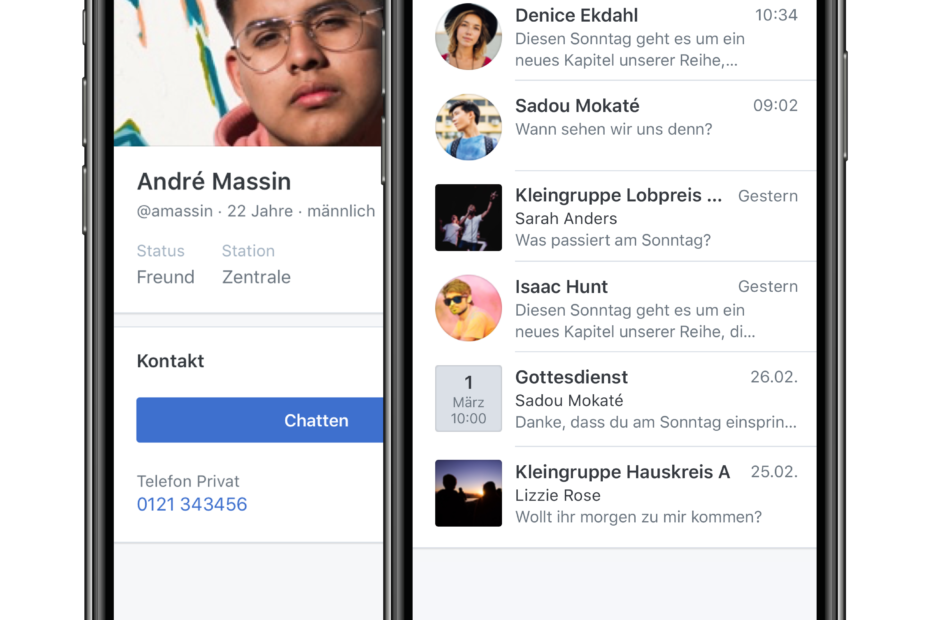 Mit ChurchTools hast du unsere Gemeinde in der Hosentasche: Kalender, Dienste, Gruppen, Neuigkeiten, Chats – alles in einer App. Du kannst dich einbringen, kommunizieren, organisieren und am Gemeindeleben teilhaben – wann und wo du willst.